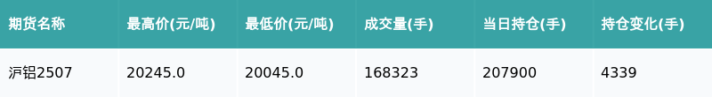 南财智讯5月29日电,南财金融终端盘后期货数据显示卓越汇,上海期货交易所的沪铝主力合约收涨0.25%,收盘报20200.0元/吨,日内资金流入9811.95万元。其他相关指标见下表: